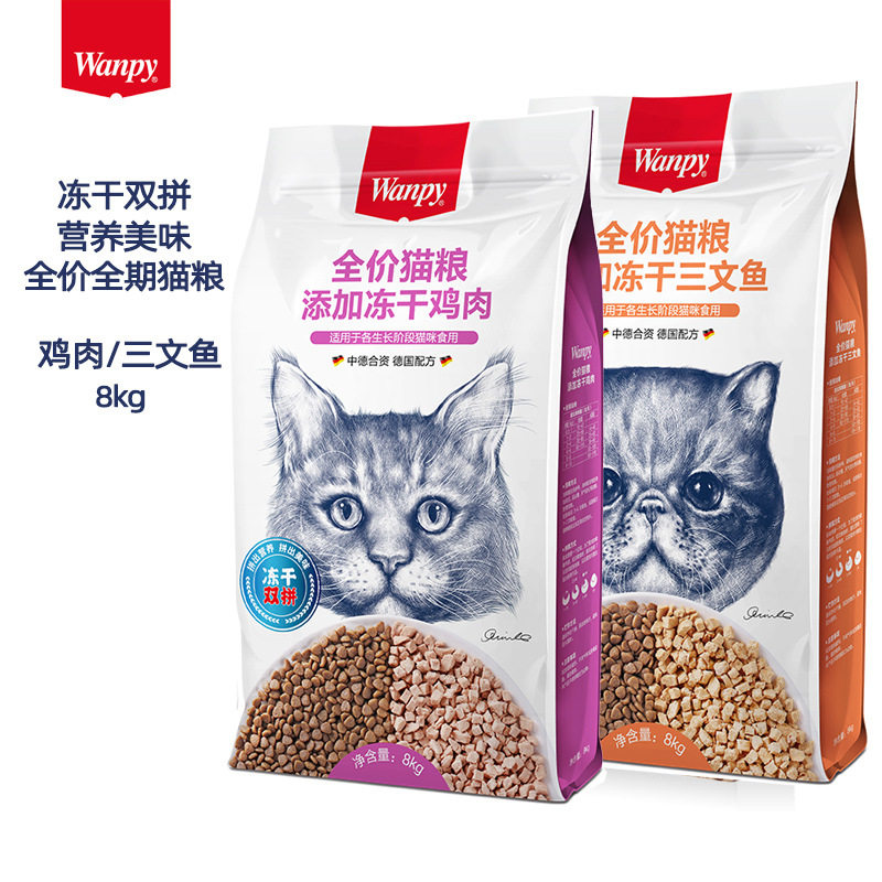 顽皮双拼冻干三文鱼猫粮8kg全阶段幼猫成猫营养增肥发腮通用猫粮