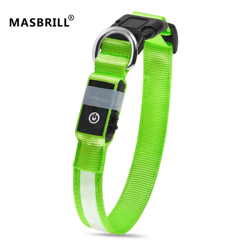 玛思贝瑞(MASBRILL)狗狗项圈 发光脖套 中大小型犬小狗拉布拉多泰迪柴犬金毛宠物用品脖圈 绿色 S 适用颈围28-40cm