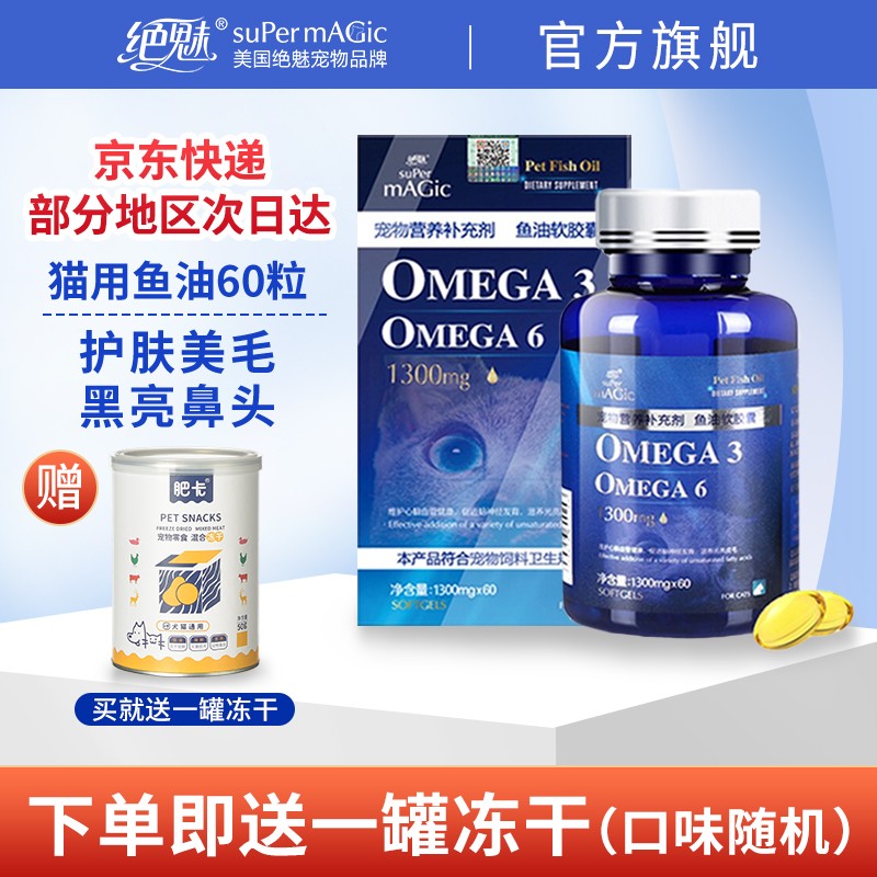 【七仓直发】美国绝魅狗狗鱼油宠物鱼油三文鱼油卵磷脂美毛防掉毛黑鼻头浓缩鱼油亮毛护肤宠物营养保健用品 猫用60粒