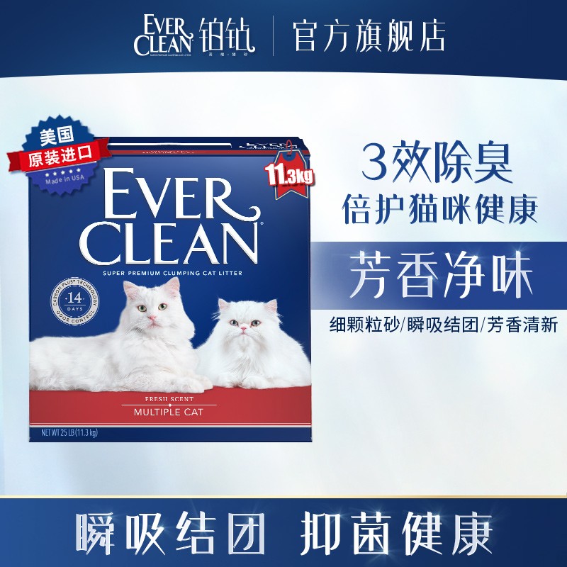 铂钻EverClean猫砂膨润土无尘 活性炭 除臭猫砂极速版七夕特惠. 红标抑氨11.3kg 现货
