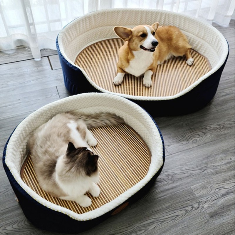 hoopet狗窝狗狗垫子冬季睡垫大型犬专用猫窝四季通用可拆洗金毛冬天柯基 藏蓝全可水洗狗窝 超大号