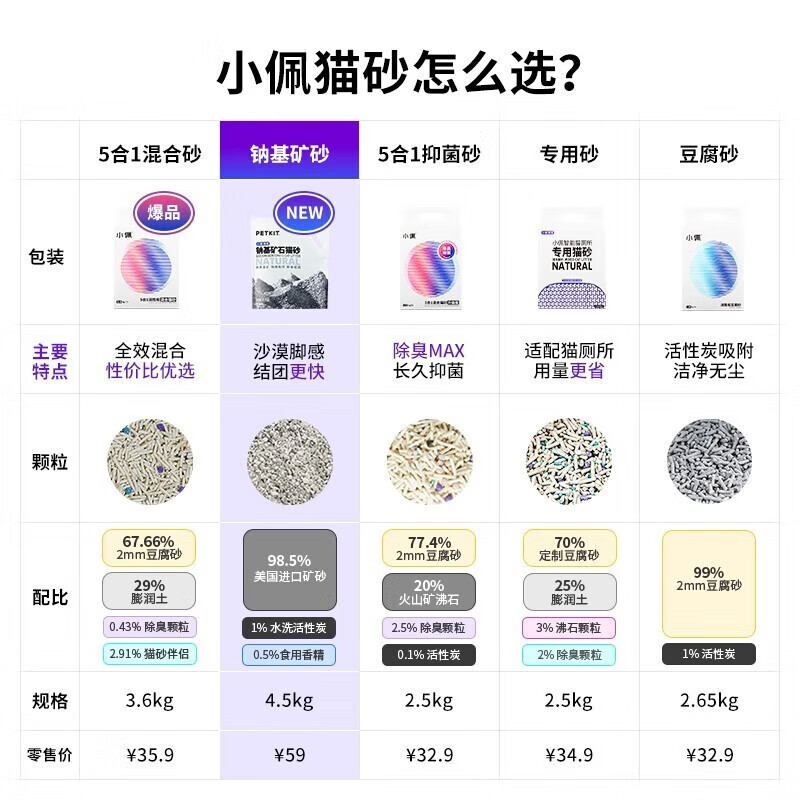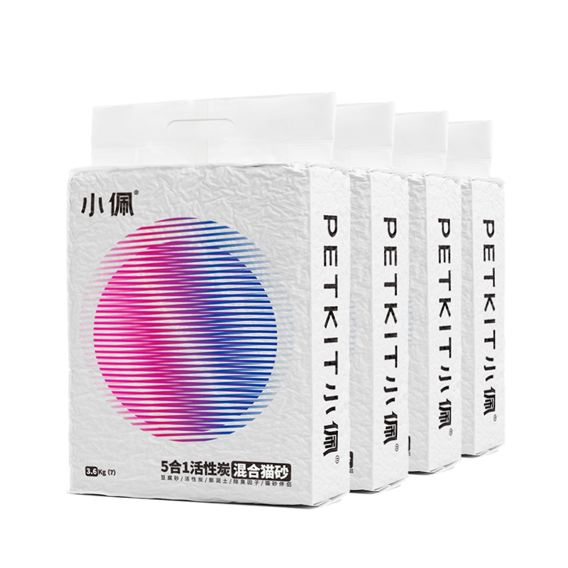 小佩【京喜专用】五合一混合猫砂 活性炭豆腐膨润土 可冲厕所除臭 5合1混合砂 3.6kg*4包