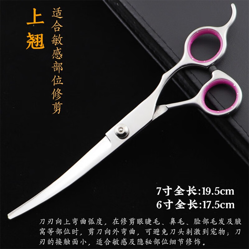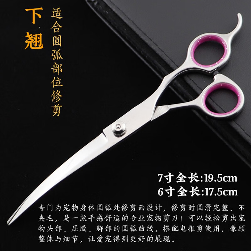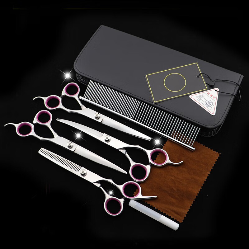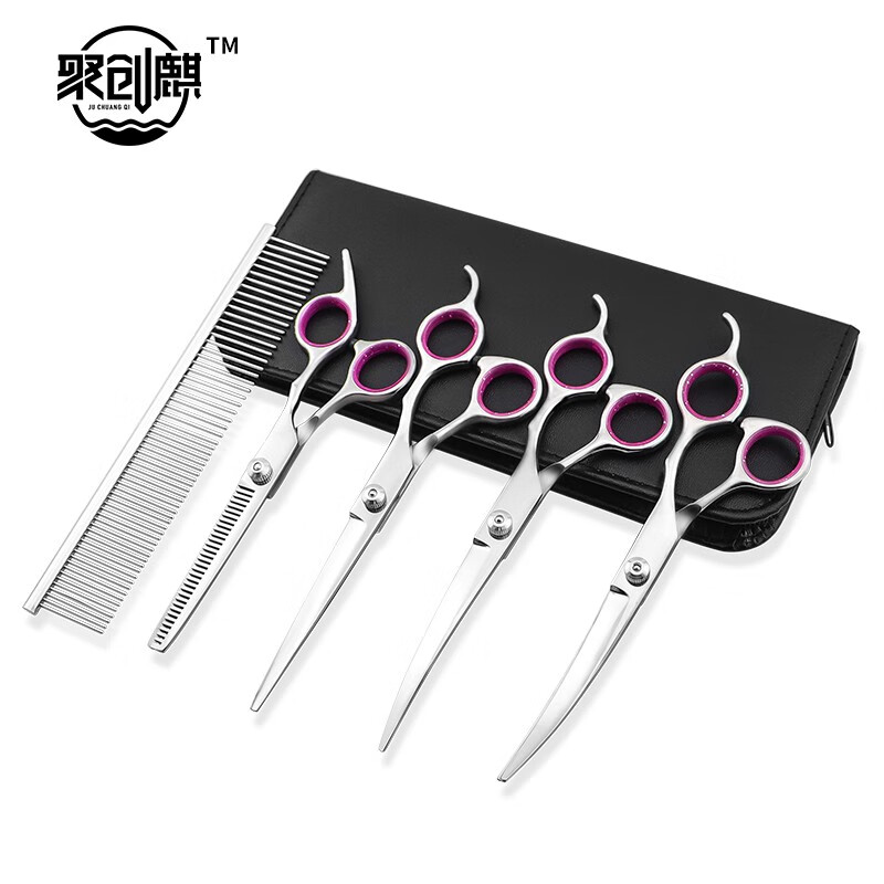 聚创麒 宠物美容剪刀套装上下弯剪牙剪直剪专业猫咪狗狗剪刀修毛剪修工具带梳子皮包 六件套装[6.0寸]