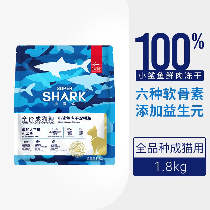 小青鲨 猫粮小鲨鱼冻干双拼肠活菌舒泪菌肉松猫粮全价成幼猫粮 试吃装50g