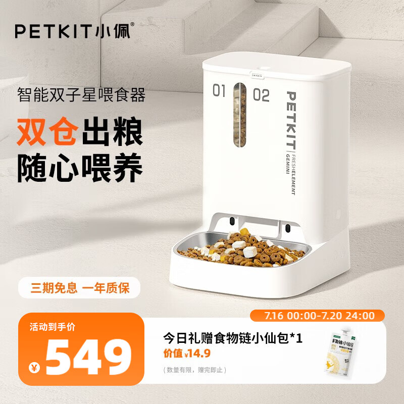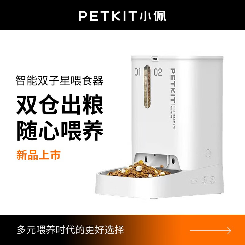 小佩智能双子星猫咪自动喂食器猫 双仓投食器放冻干远程控制猫粮狗粮 象牙白