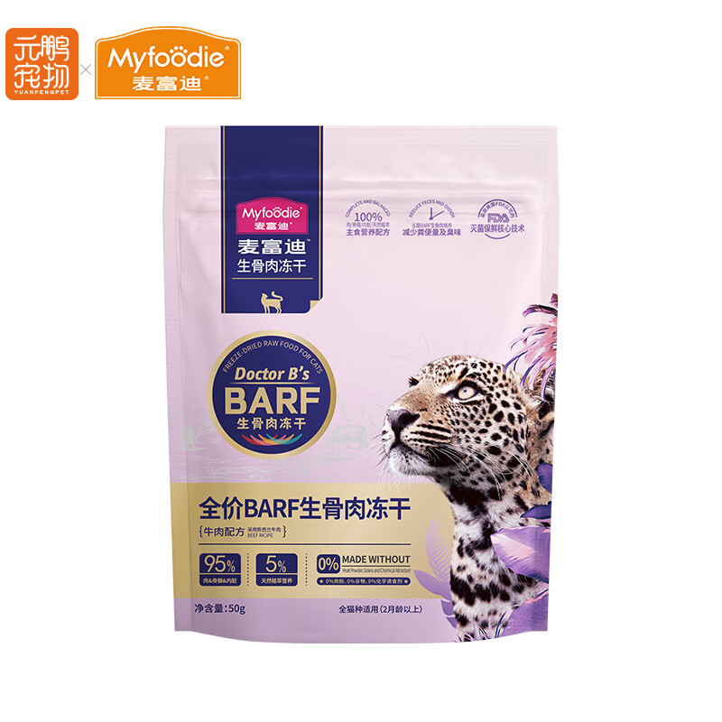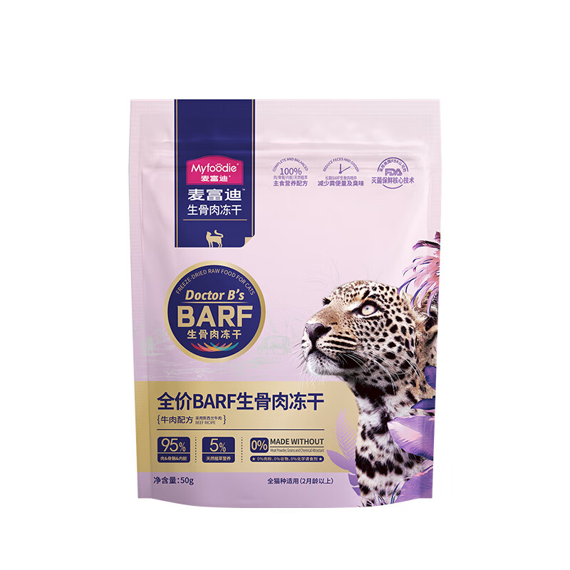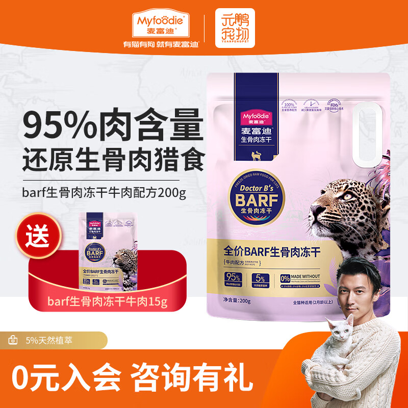 麦富迪(MYFOODIE)麦富迪barf冻干猫零食 生骨肉主食级全价宠物食品成幼猫通用 牛肉配方200g