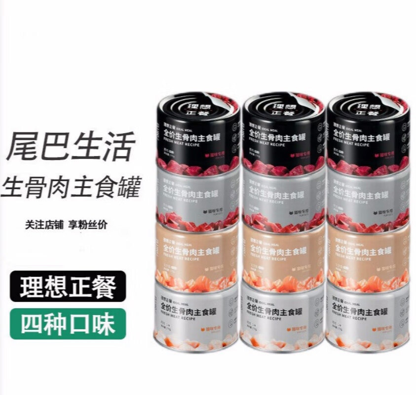 [整箱96罐]尾巴生活can811生骨肉猫咪主食罐无谷猫罐头鸡肉牛肉鱼