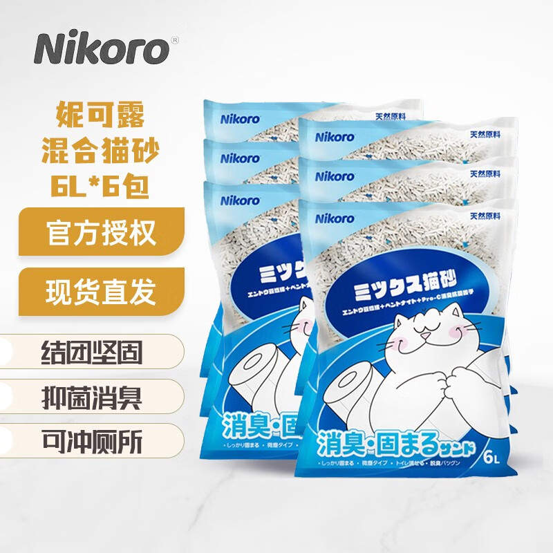 妮可露 日本Nikoro 豆腐砂速溶可冲厕所抑菌除臭猫沙混合猫砂 原味15kg(2.5*6)