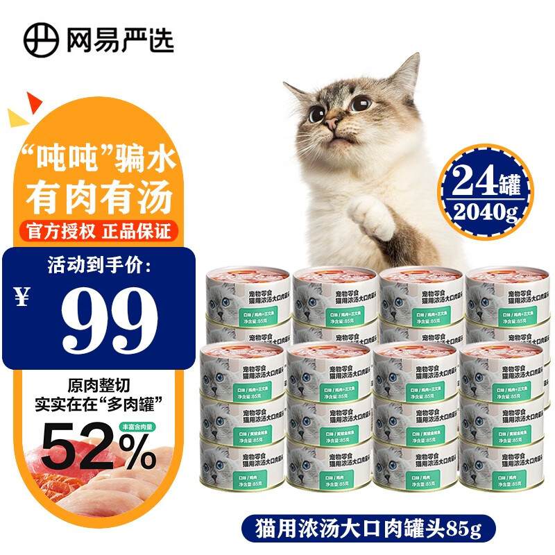 网易严选猫罐头 浓汤大口肉 鸡肉三文鱼补水猫湿粮宠物零食 猫用罐头 混合口味*24罐