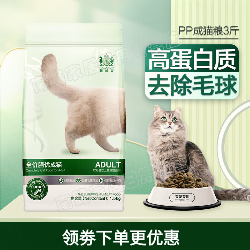 耐威克(Navarch)猫粮成猫英短波斯猫咪通用天然粮主粮3斤去毛球小包装 PP成猫粮3/斤 1.5/kg
