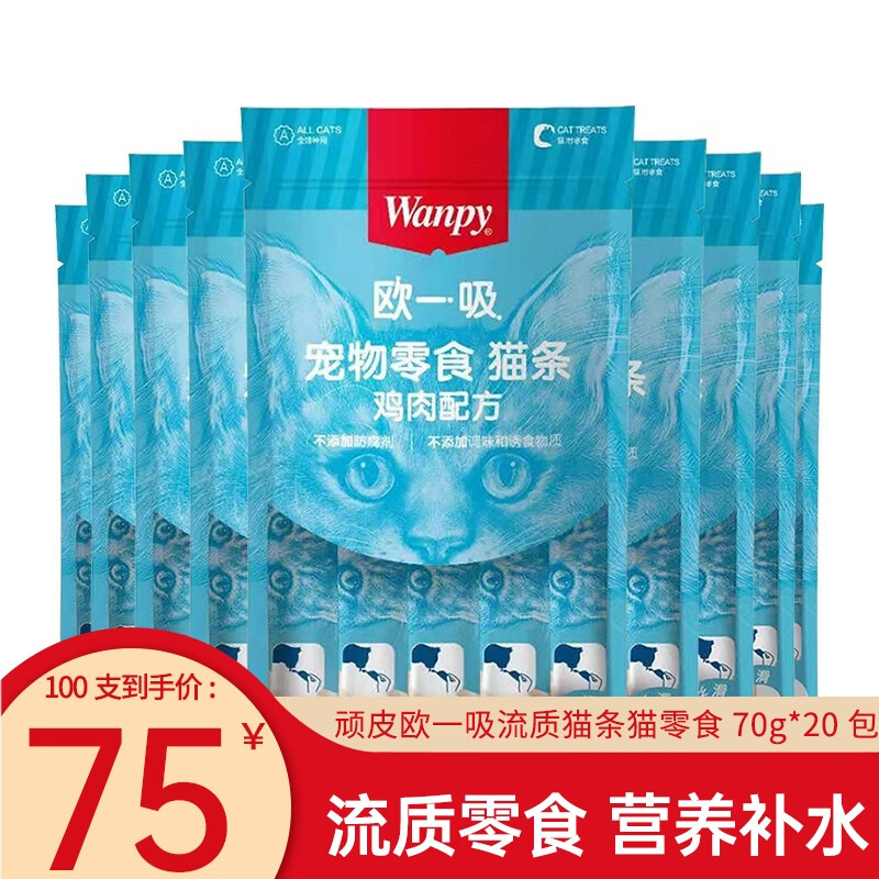 顽皮(Wanpy)欧一吸猫条猫咪流质零食成幼猫增肥补充营养湿粮 鸡肉 70g*20包