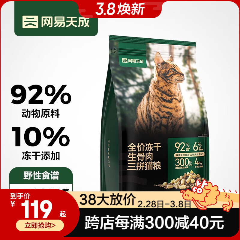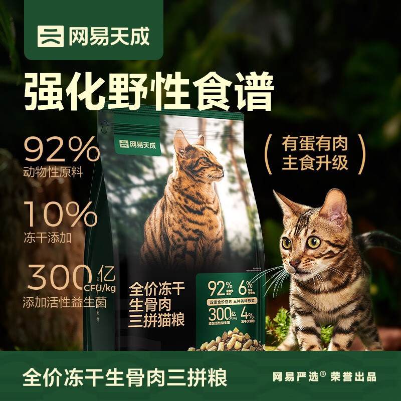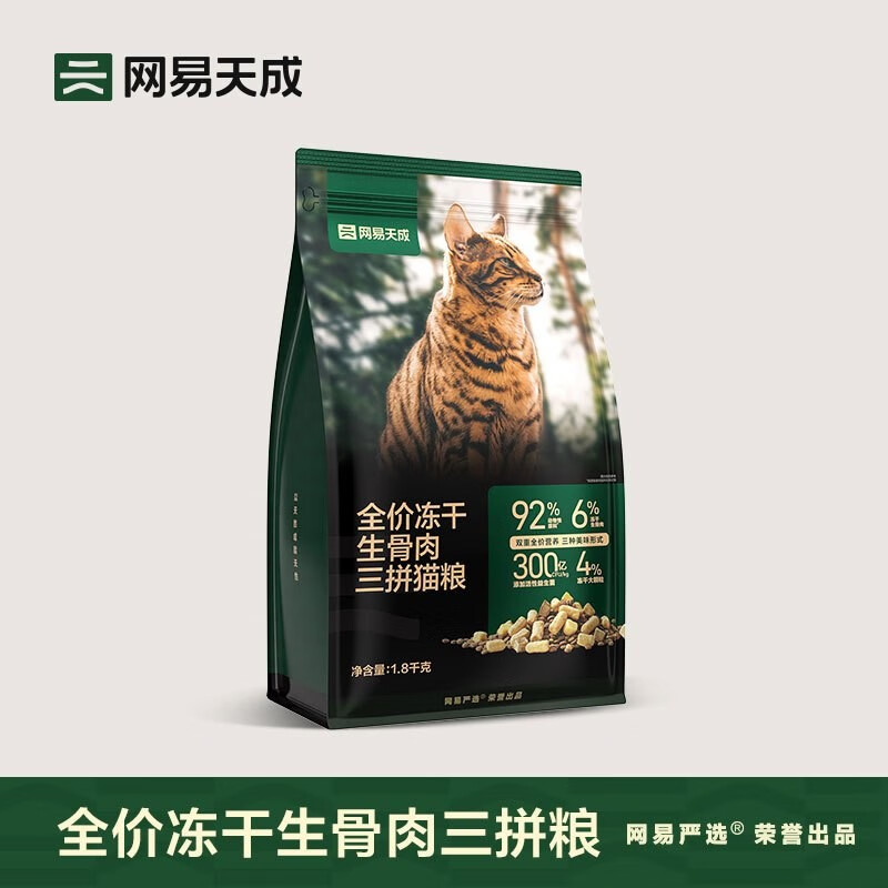 网易天成 全价冻干生骨肉三拼猫粮 高肉含量益生菌宠物主粮幼猫成猫全价 1.8千克