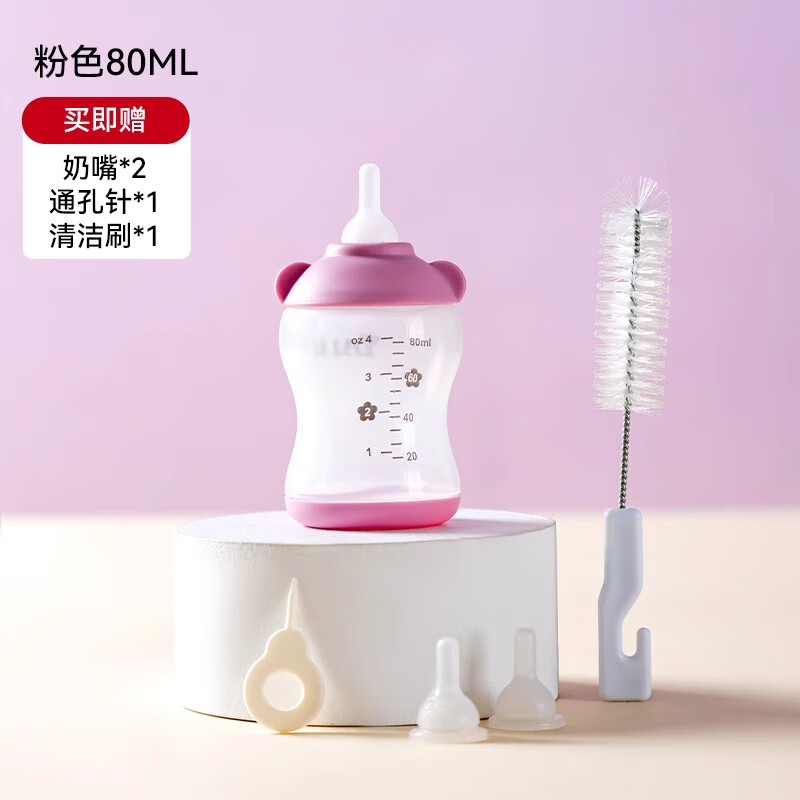 嬉皮狗(hipidog)猫咪奶瓶幼猫初生猫咪耐咬防呛宠物奶瓶猫狗用喂奶器奶嘴猫咪用品 小熊奶瓶粉色80ML 无规格