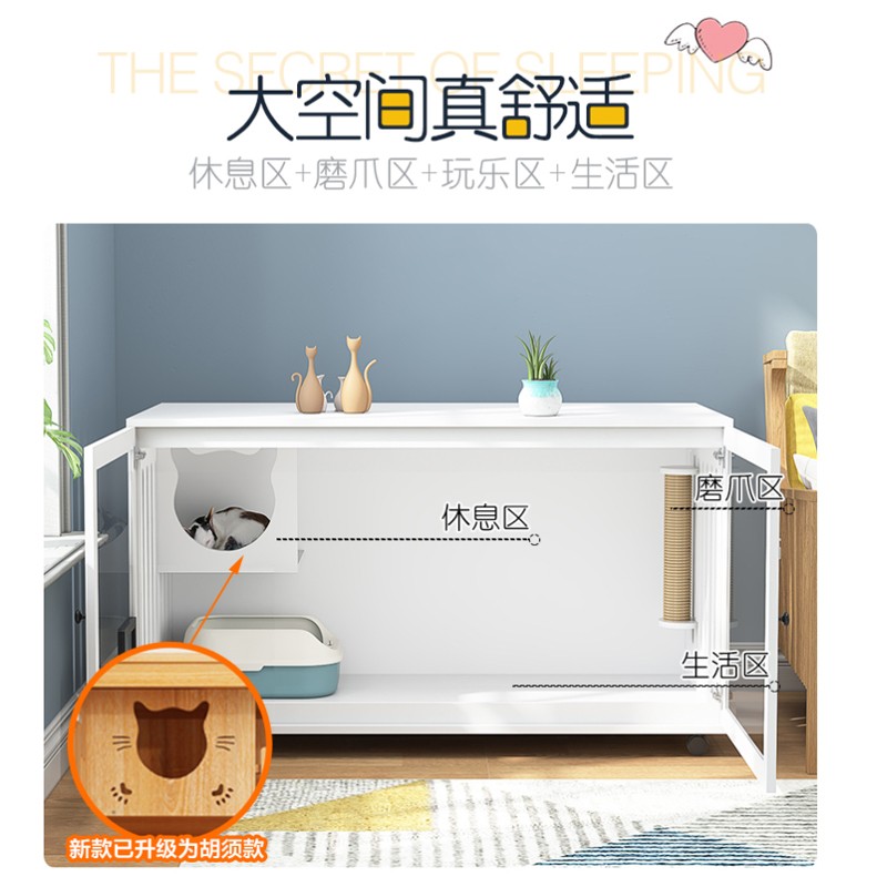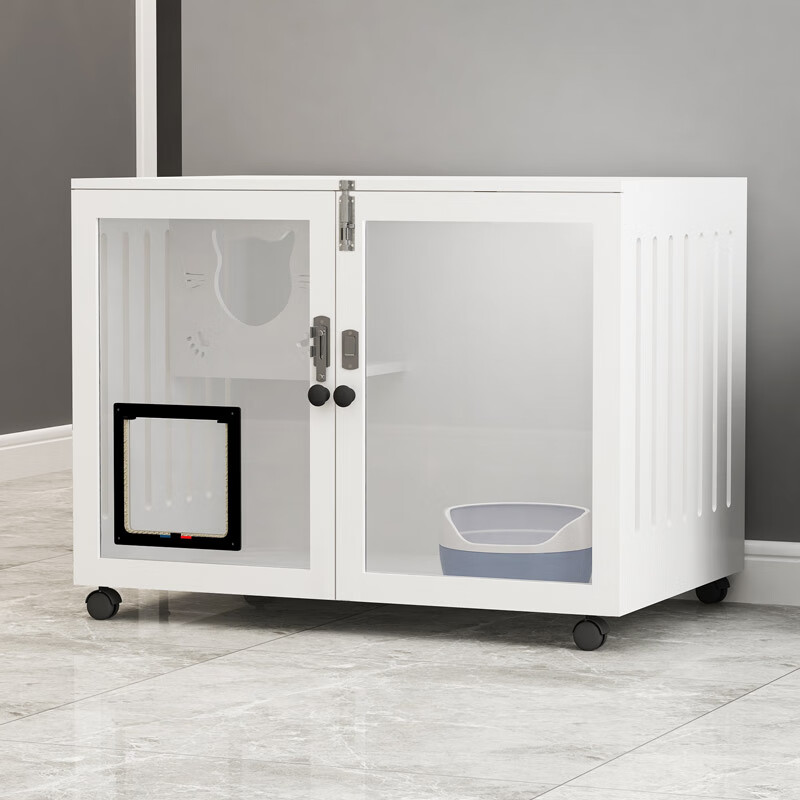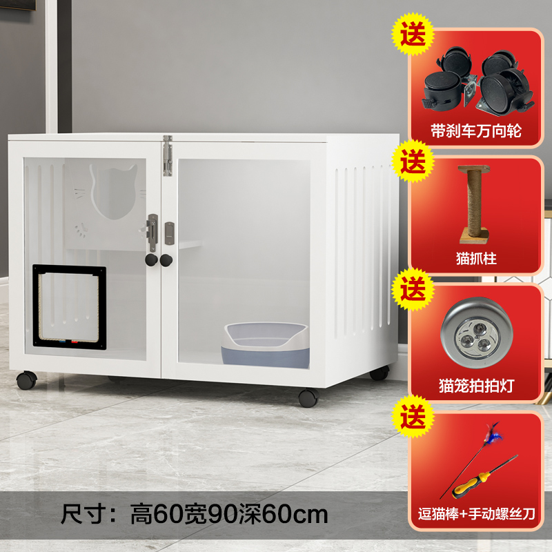 七夕旺猫笼子 实木生态猫别墅 猫笼木质 猫舍猫窝封闭式 防水可擦拭消毒 高60宽90深60白色