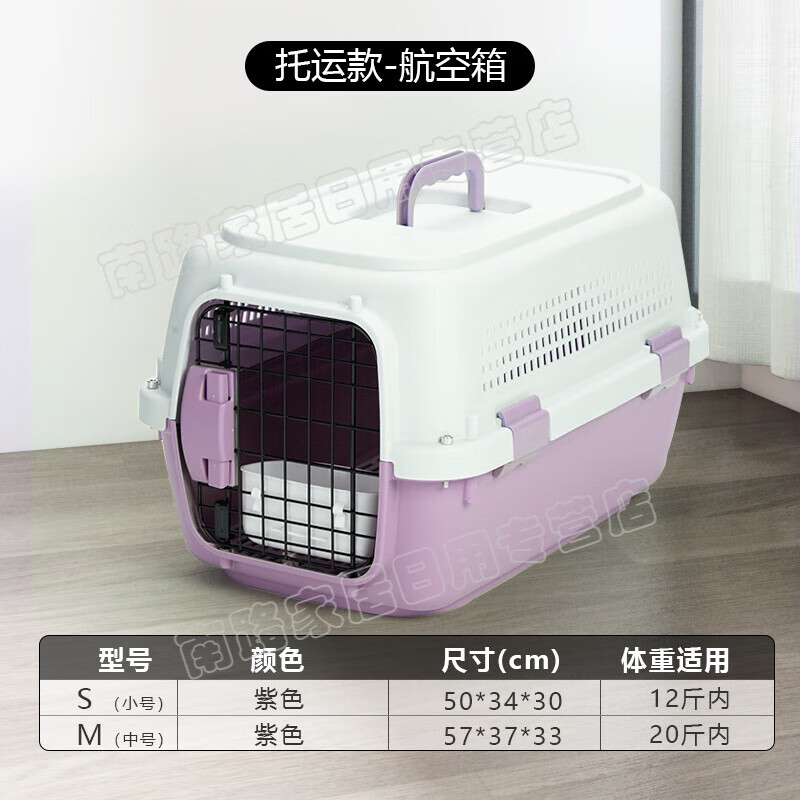 波奇多 猫咪航空箱宠物托运箱猫笼狗笼子小中型犬外出便携猫包装狗箱 [托运款]紫色-贈隔尿板 挂碗 /M-中号航空箱[20斤以内犬猫]