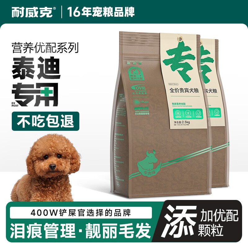 耐威克全价泰迪贵宾狗粮 小型犬狗粮 美毛淡泪痕牛肉味犬粮 3个月龄以上泰迪专用丨5kg