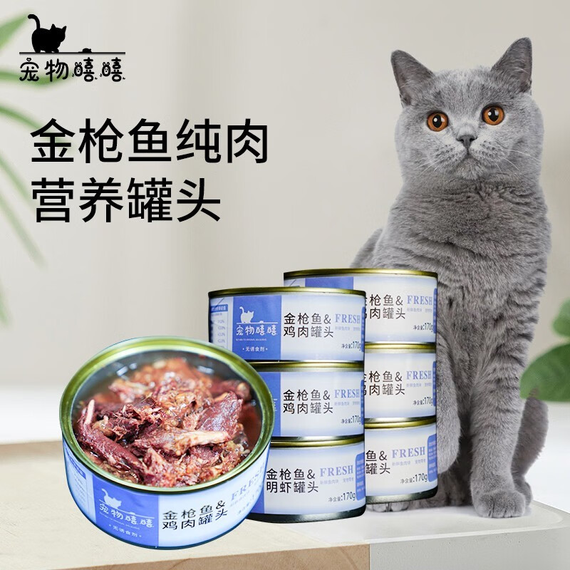 宠物嘻嘻 猫罐头营养纯肉猫咪幼猫成猫营养发腮整箱猫零食主食170g 混合口味营养猫罐头6罐