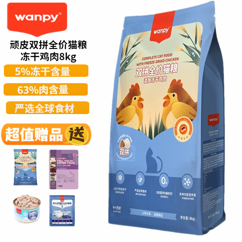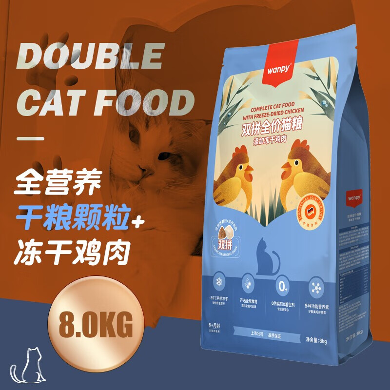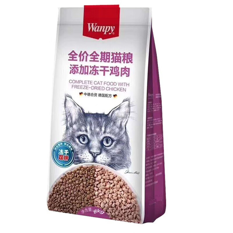顽皮(Wanpy)双拼猫粮冻干三文鱼幼猫粮美短布偶全价猫粮成猫增肥发腮 8kg冻干鸡肉猫粮