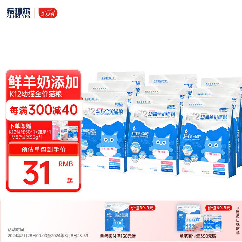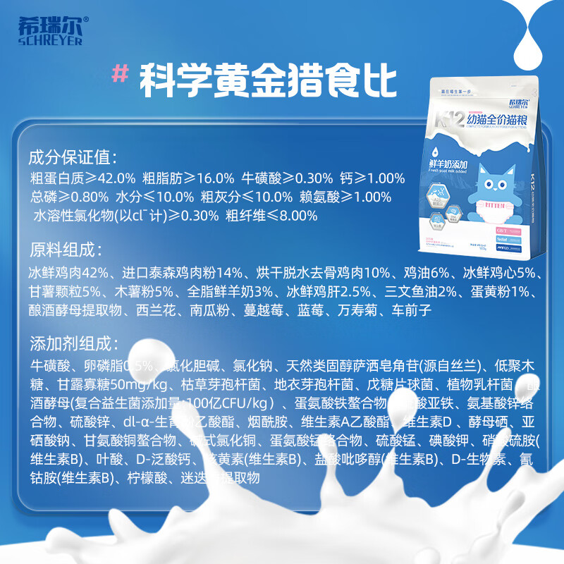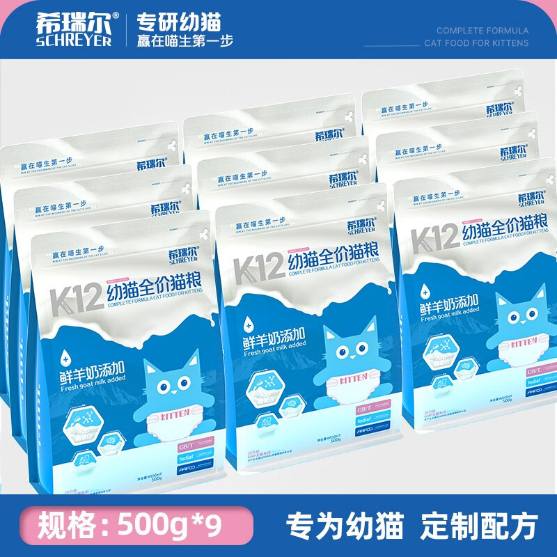 希瑞尔(SCHREYER)K12幼猫奶糕母乳配方高蛋白低敏鲜羊奶鸡肉鲜肉猫粮4.5kg 4.5kg(500g*9)