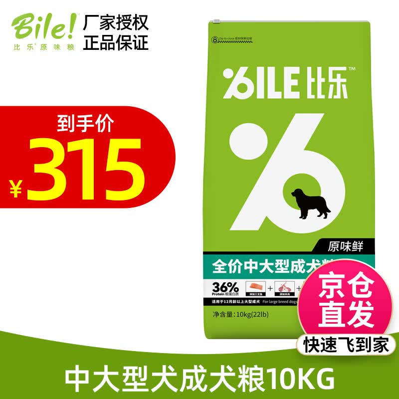 比乐狗粮 原味鲜系列狗主粮10kg 低敏0谷物配方全价狗粮 中大型犬成犬粮10kg