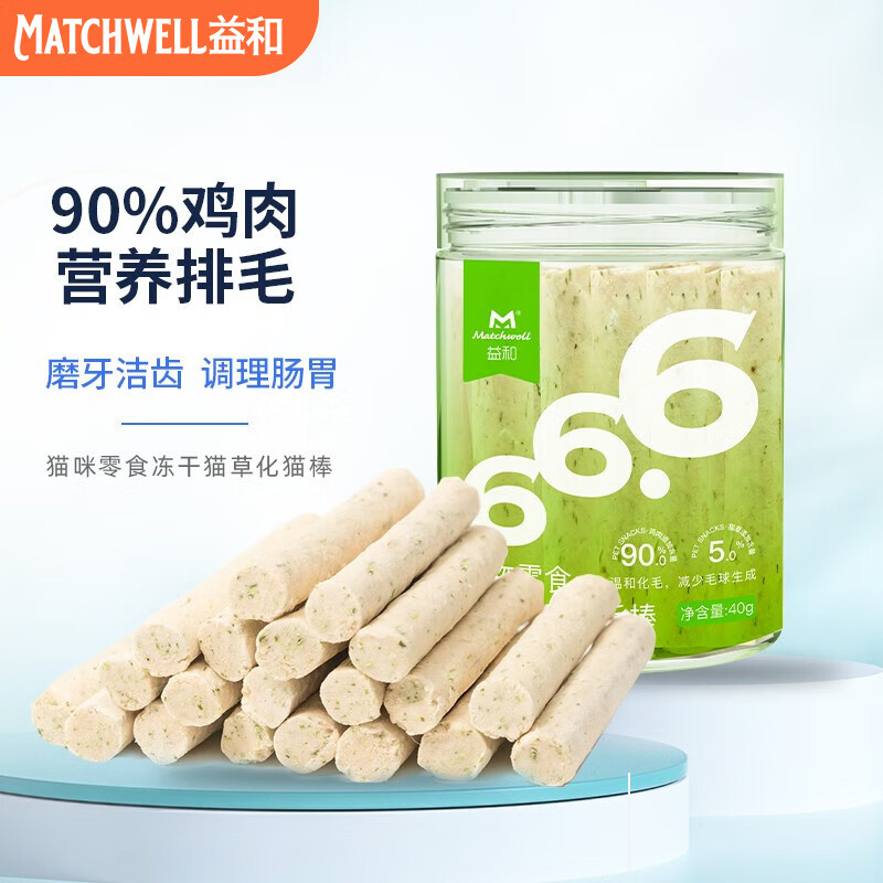 益和(MATCHWELL)猫草磨牙棒冻干猫咪零食去毛球排毛宠物零食幼猫成猫口腔洁齿
