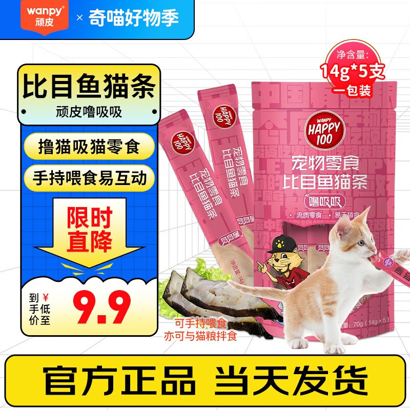 Wanpy顽皮噜吸吸猫条零食营养条 妙鲜猫咪湿粮流质补水猫零食 成猫幼猫湿粮包猫咪流质湿猫粮拌饭零食 比目鱼口味 20包装(100支)