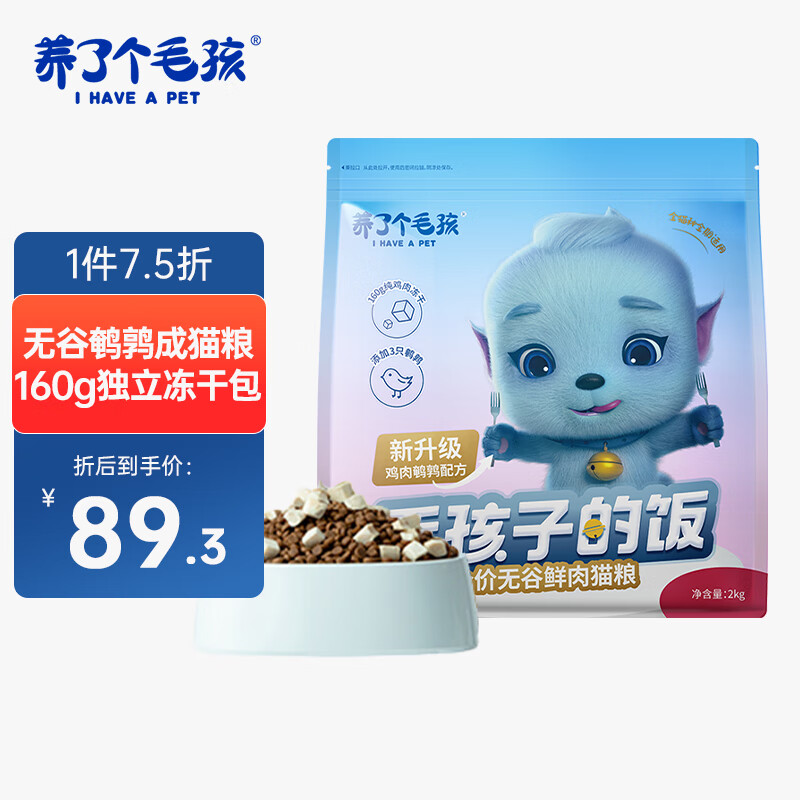 养了个毛孩成猫通用粮冻干猫粮混合口味天然无谷全价发腮成猫鸡肉鹌鹑味2kg