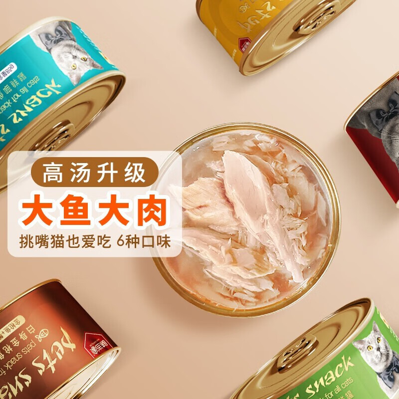 舔舔乐汤汁罐头80g猫零食湿粮金枪鱼肉海鲜罐营养增肥发腮成幼猫通用 混合口味6罐