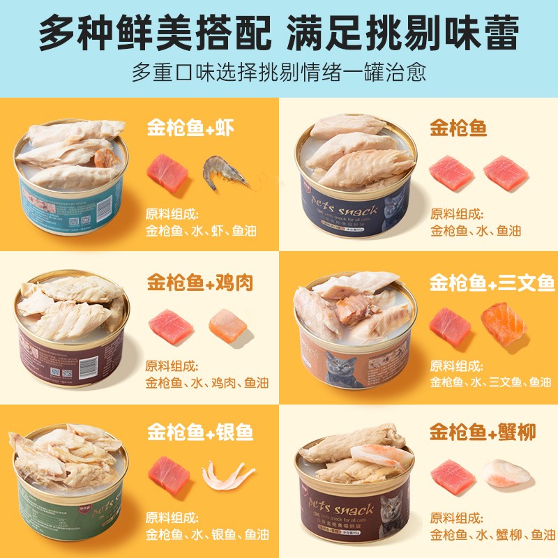 【急速达】Toptrees领先猫咪零食鱼罐头金枪鱼增肥营养发腮鸡肉猫粮80g 【尝鲜】金枪鱼 三文鱼 10罐
