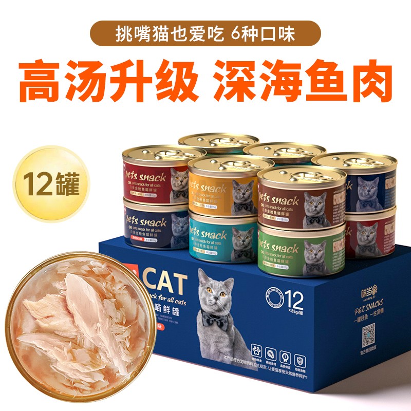 味当家猫零食猫罐头 进口金枪鱼原料升级白肉高汤罐成幼猫咪怀孕补充营养 混合口味 85g*12罐【整箱装】