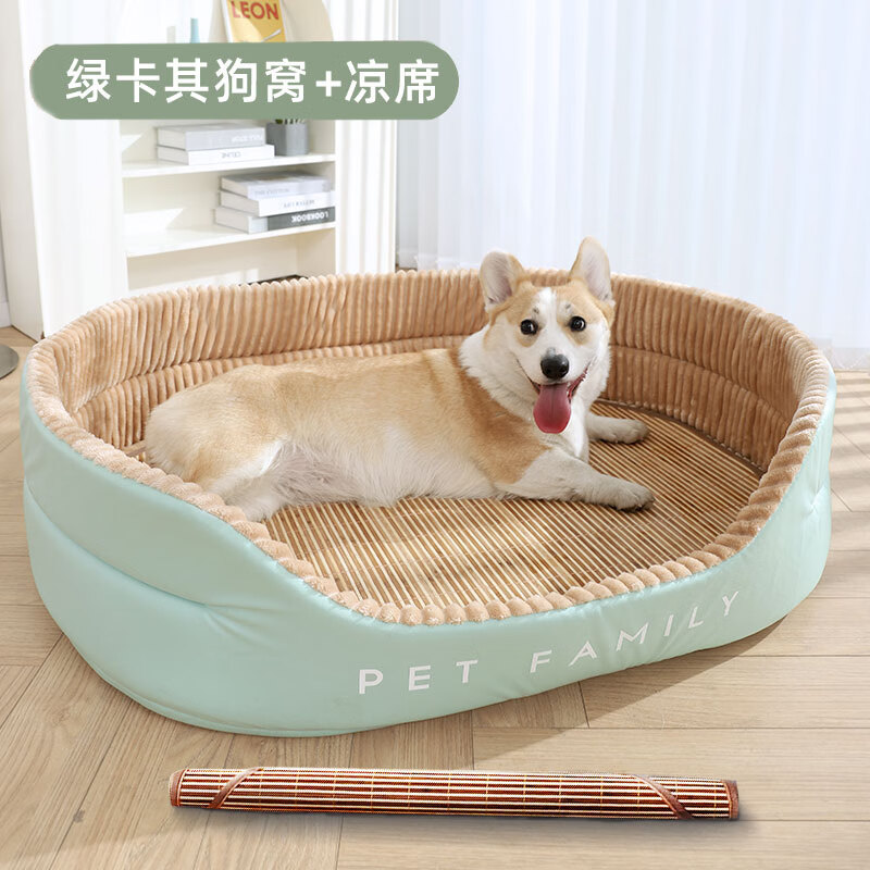 爱旺宠物狗窝四季通用小型犬泰迪比熊犬可拆洗狗垫子睡觉用狗狗床宠物柯基 绿卡其狗窝 凉席 店长主推春夏用 m-中号60CM(建议20斤内宠物)