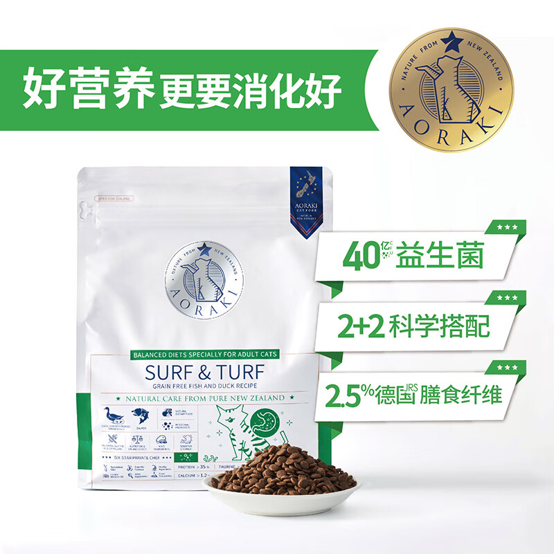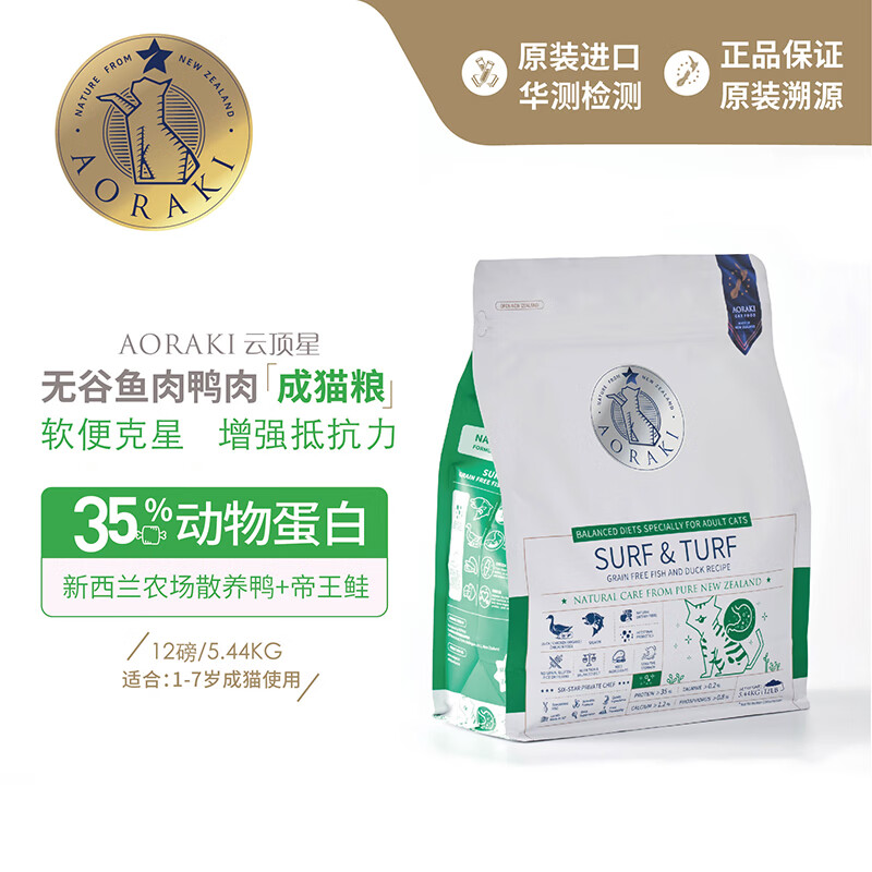 云顶星(aoraki)新西兰原装进口 鸭肉三文鱼无谷成猫猫粮低敏护胃配方5.44kg