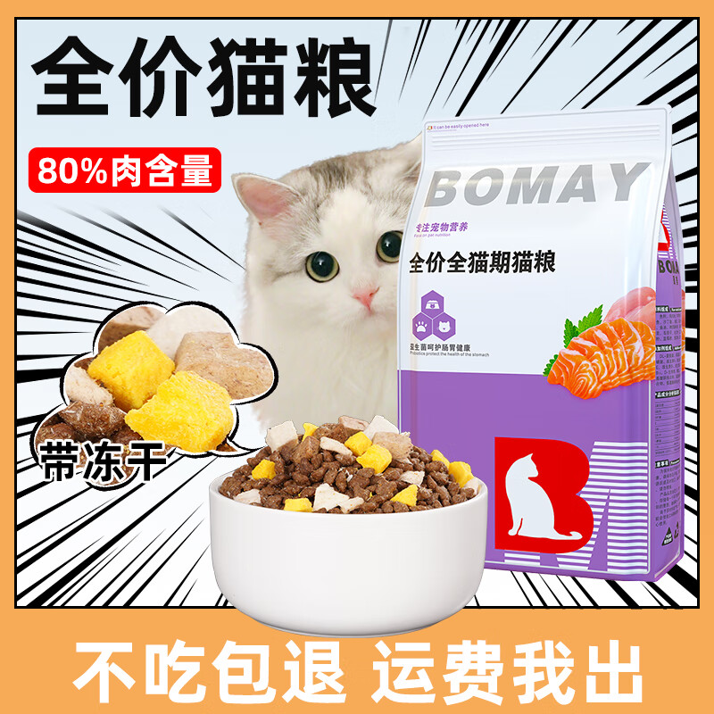 BOMAY全价全期猫粮冻干多拼深海鱼味成猫幼猫通用型无谷低油低盐猫主粮 60%含肉量1斤