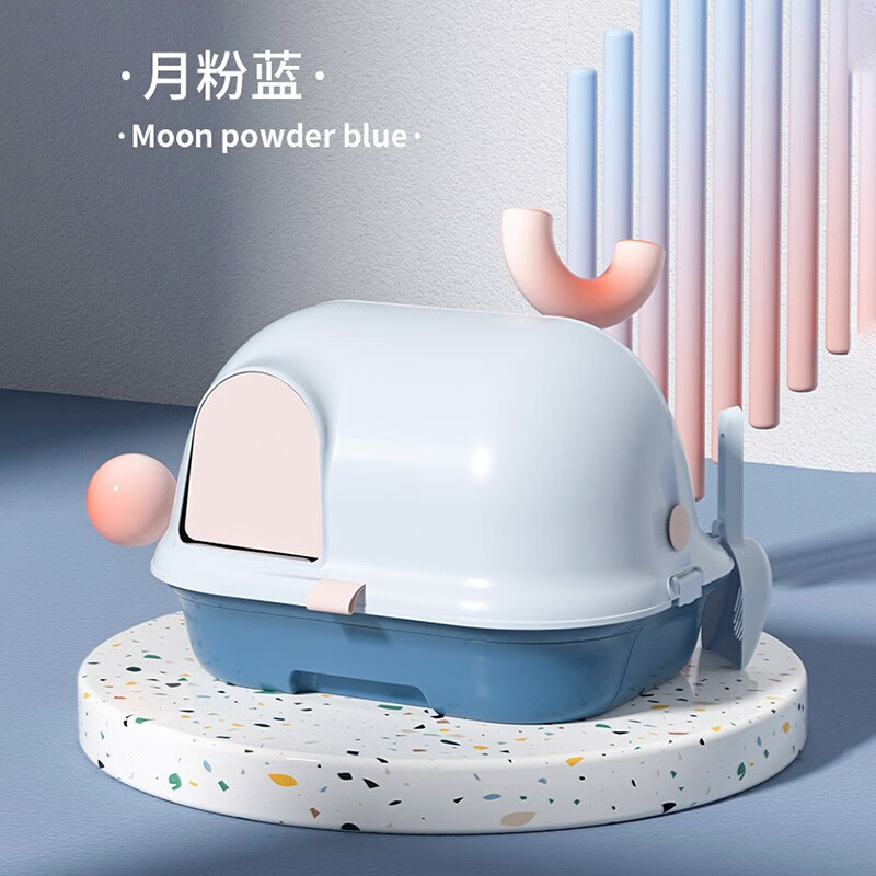 派可为 敞开式猫砂盆大号猫厕所猫咪用品猫砂盆防外溅 走廊抽屉式-月蓝粉色【20斤内】
