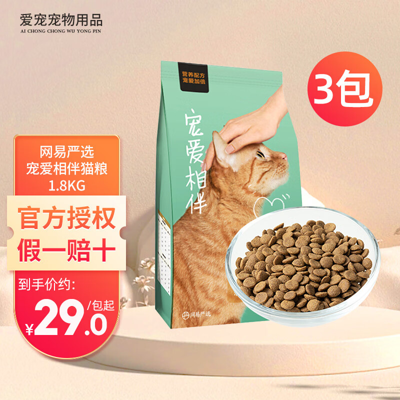 网易严选猫粮 1.8kg 全价冻干猫粮成猫猫粮幼猫猫粮无谷粮猫干粮猫主粮 【宠爱相伴】全价猫粮 1.8kg*3包