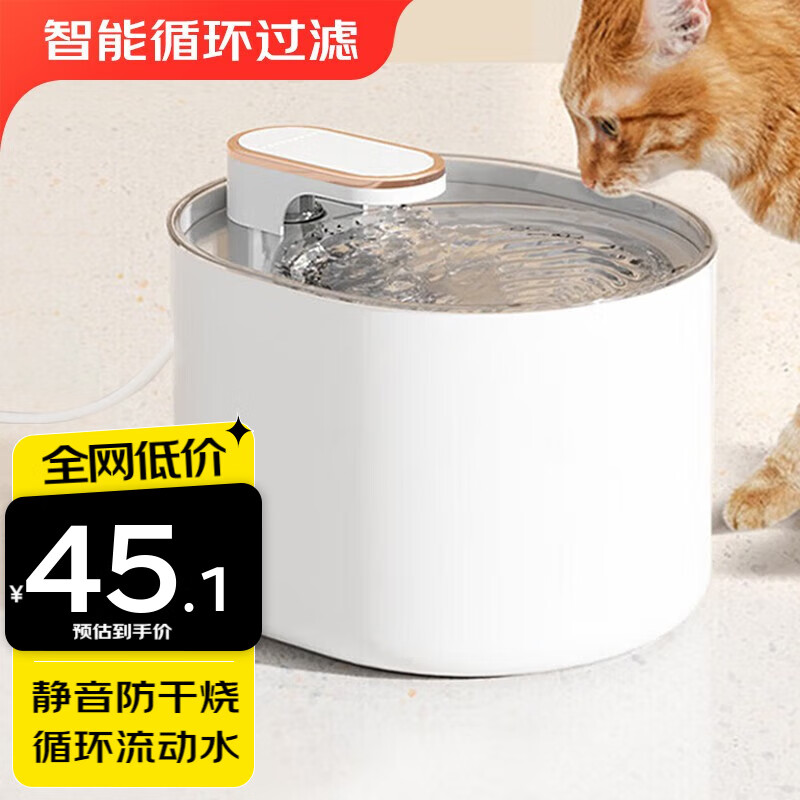 宠初元猫咪饮水机宠物饮水机饮水器 智能过滤自动循环流动水静音大容量 典雅白【高配版(带灯断电保护)】