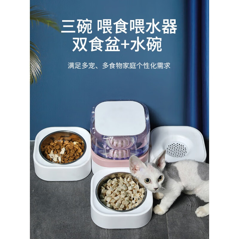 楠洛猫碗双碗猫盆食盆防打翻水碗自动饮水宠物猫咪饭盆猫粮碗狗盆狗碗 单个饮水器-莫兰迪粉 防打翻,不湿嘴(猫狗通用)