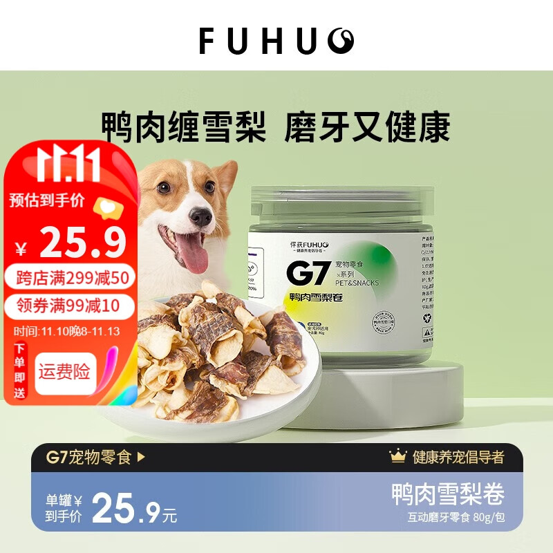 俘获G7鸭肉雪梨卷小狗狗磨牙棒幼犬小型犬中型犬奖励宠物零食狗零食 鸭肉雪梨卷*1罐
