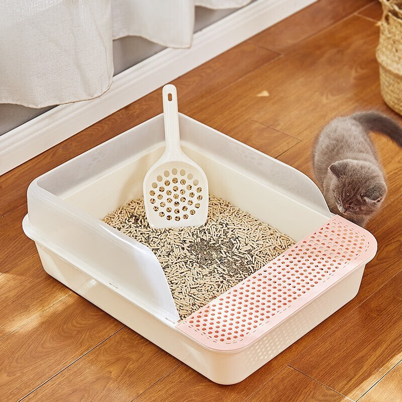 汤琪猫砂盆顶入半封闭式特大号幼猫成猫厕所猫屎盆猫沙盆防外溅猫咪用品带猫砂铲子 新款粉色 S码 42*27.2*17cm 带猫砂铲