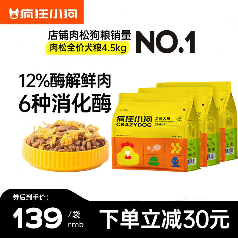 疯狂小狗 小型犬狗粮泰迪博美柯基成犬幼犬通用全价肉松狗粮 【升级酶解工艺】肉松狗粮4.5kg 全犬期