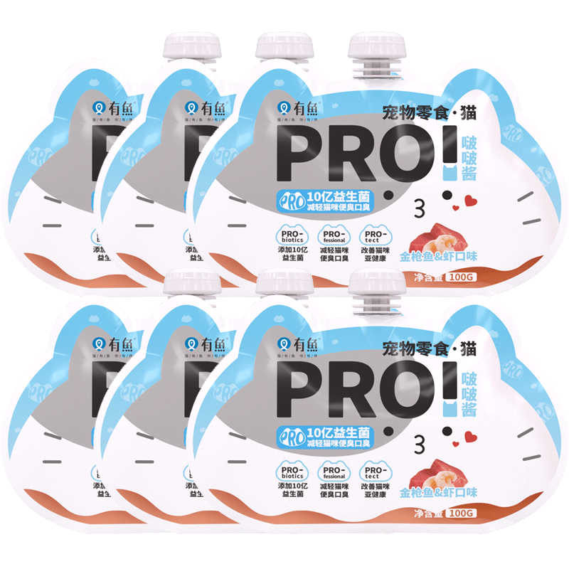 有鱼PRO系列啵啵酱益生菌肉酱包营养湿粮罐头成幼猫零食100g*6袋