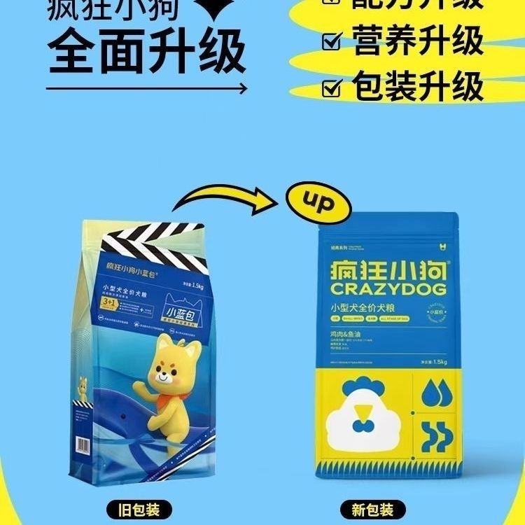 疯狂小狗狗粮泰迪比熊柯基专用粮小型犬成犬幼犬通用型 小蓝包肉粒双拼3斤