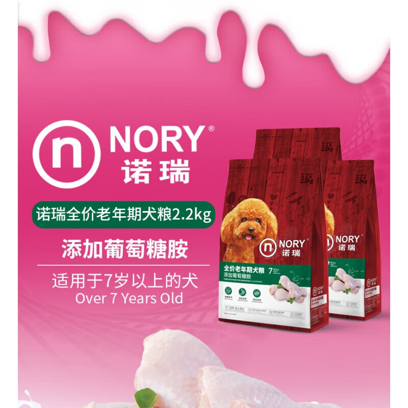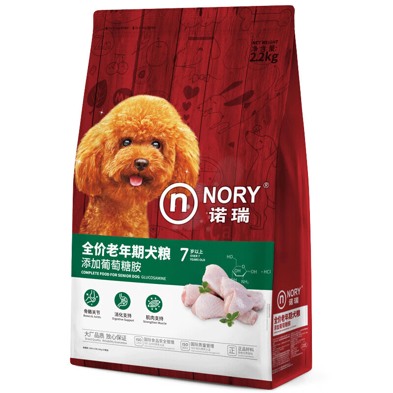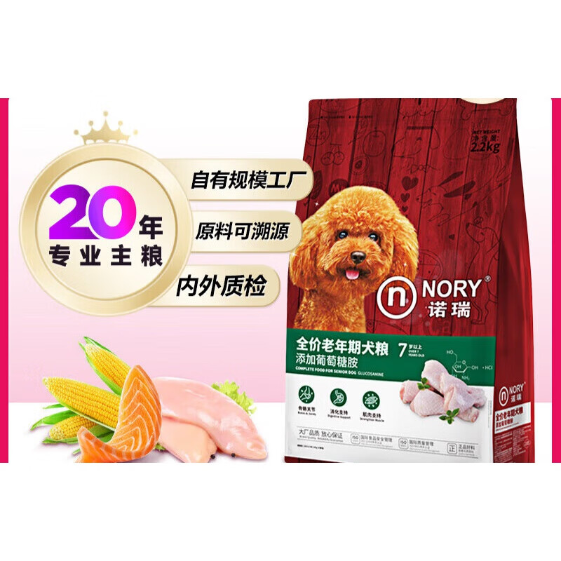 诺瑞(NORY N)老年犬狗粮2.2kg 呵护高龄老年犬 添胺 颗粒小易食消化 小型老年犬-小颗粒易食 2.2kg