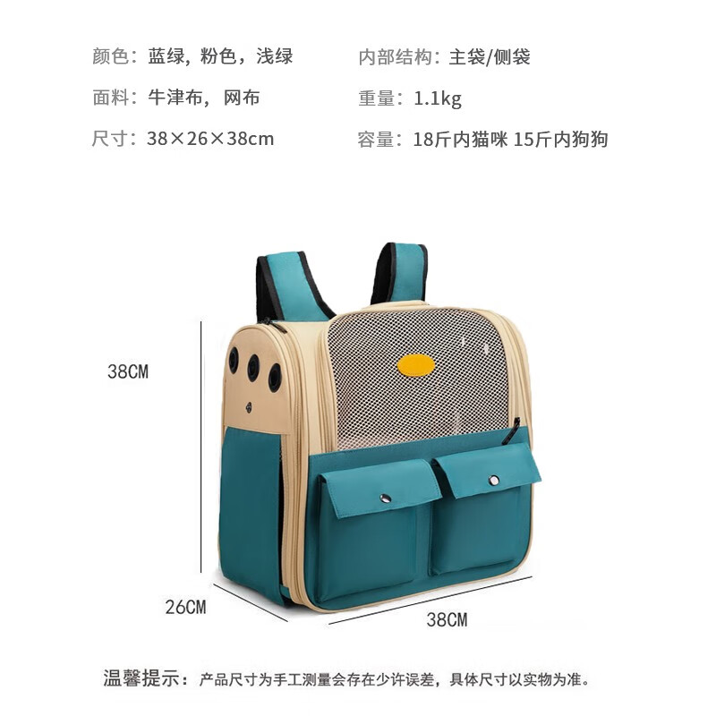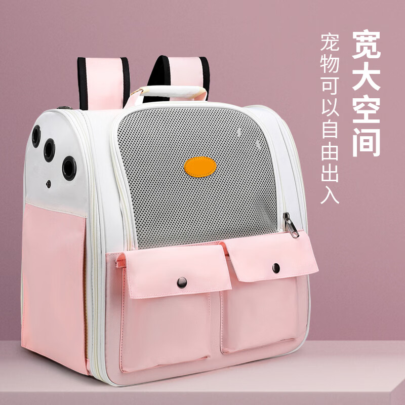 COCS 猫包外出大号宠物包猫背包双肩包书包小号太空舱箱狗狗猫袋猫咪便携出行透气 粉色 18斤内猫咪13斤内狗