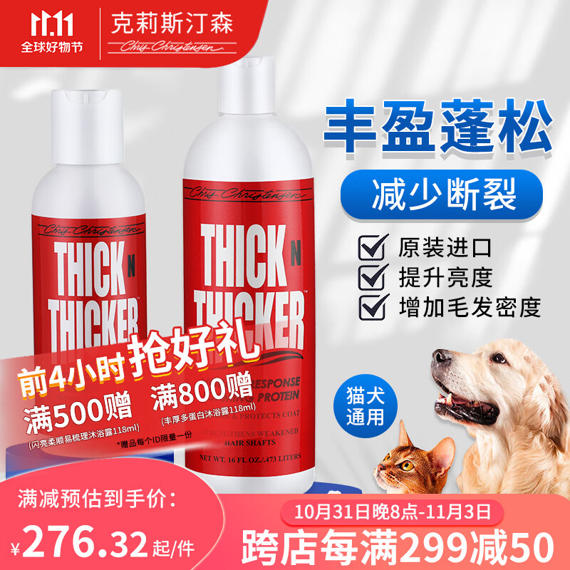 克莉斯汀森(Chris Christensen)美国进口丰厚多护毛素蛋白霜猫狗护毛增量蓬松减少断裂 丰厚多蓬松毛发高蛋白乳液473ml