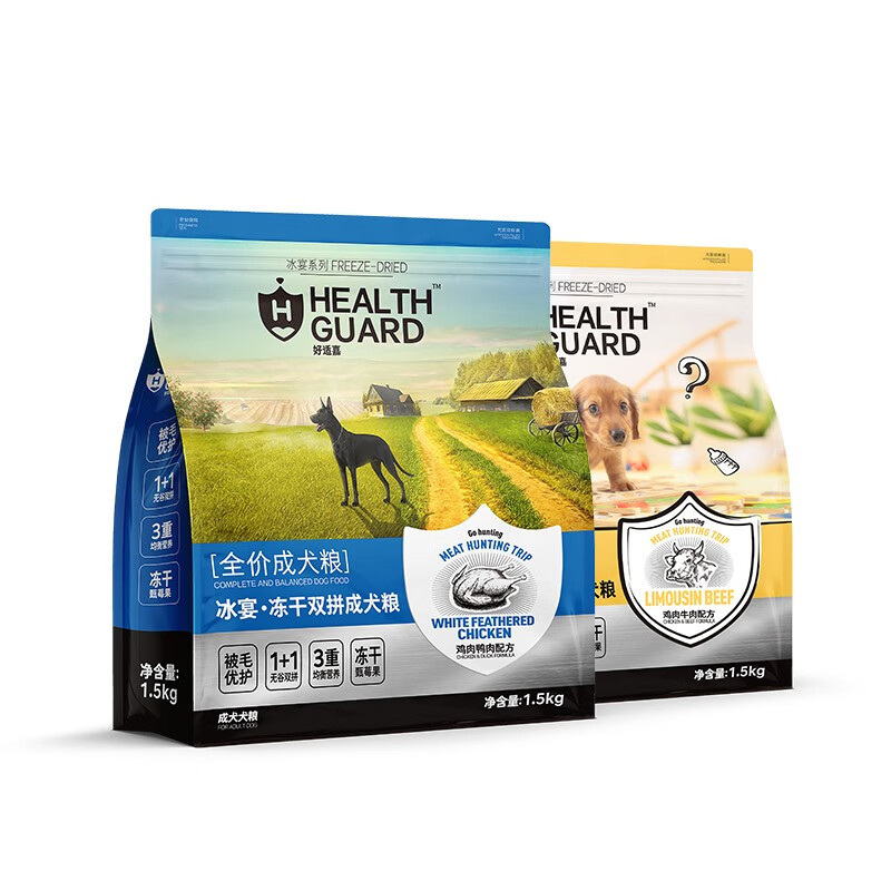 好适嘉(HEALTH GUARD)狗粮10kg 冰宴系列冻干双拼狗粮 成犬幼犬粮通用免疫保护全价犬粮 幼犬10kg冰宴·全种通用