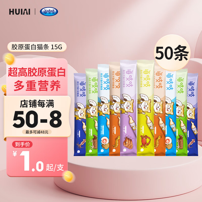阿卡强(AKACHAN)海吱吱猫条15g猫零食猫罐头猫咪零食猫湿粮宠物零食多重营养 15g*50条(金枪鱼 扇贝柱)