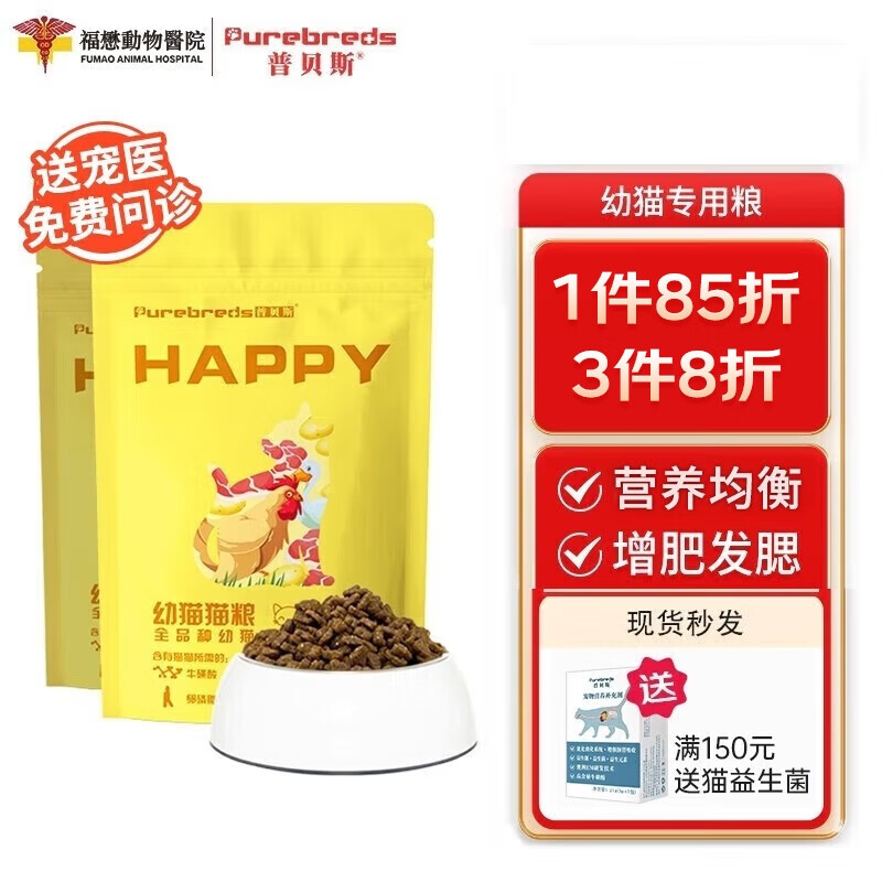 普贝斯 happy猫粮幼猫天然粮室内猫深海鱼营养猫粮宠物小猫咪主粮 鸡肉味2包 600g