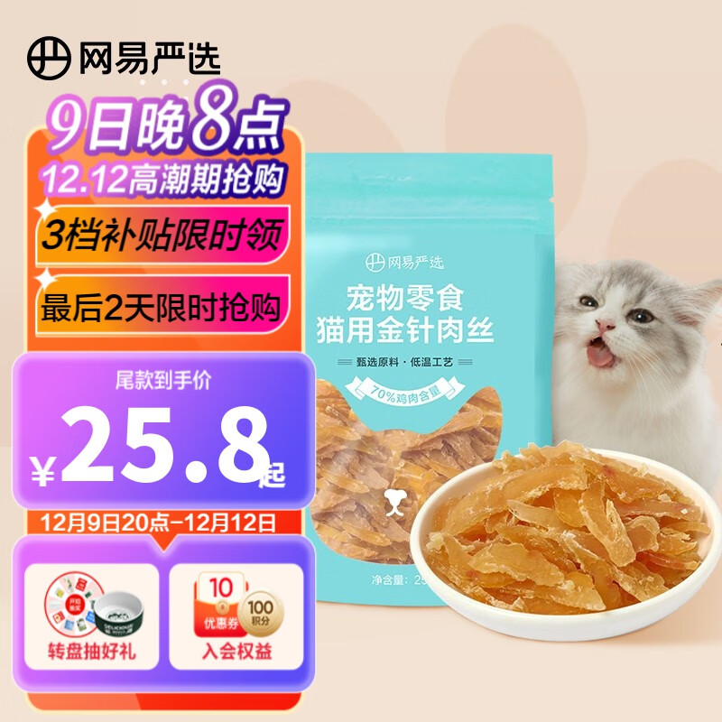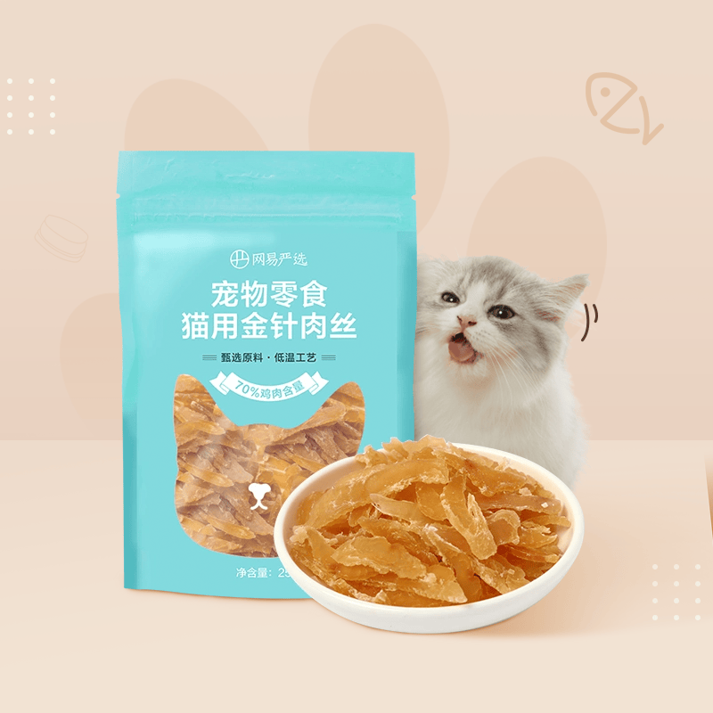 网易严选 鸡肉金针软丝 猫用小零食肉香浓郁 优质鸡胸肉 无淀粉添加 【无诱食剂】25g*6袋