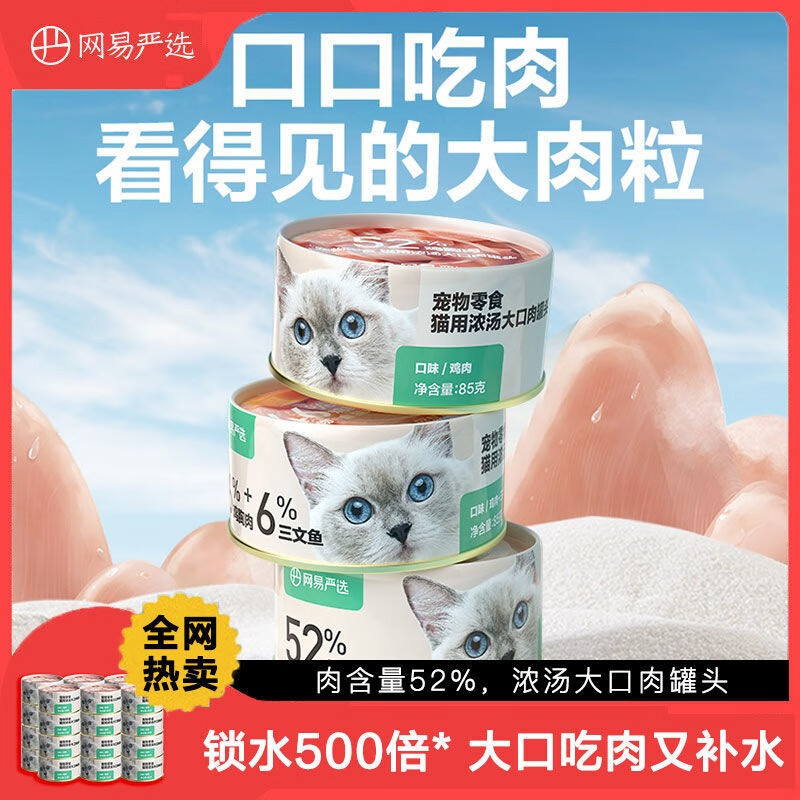 网易严选猫罐头宠物浓汤大口肉罐头 【36罐】鸡肉/金枪鱼/虾仁